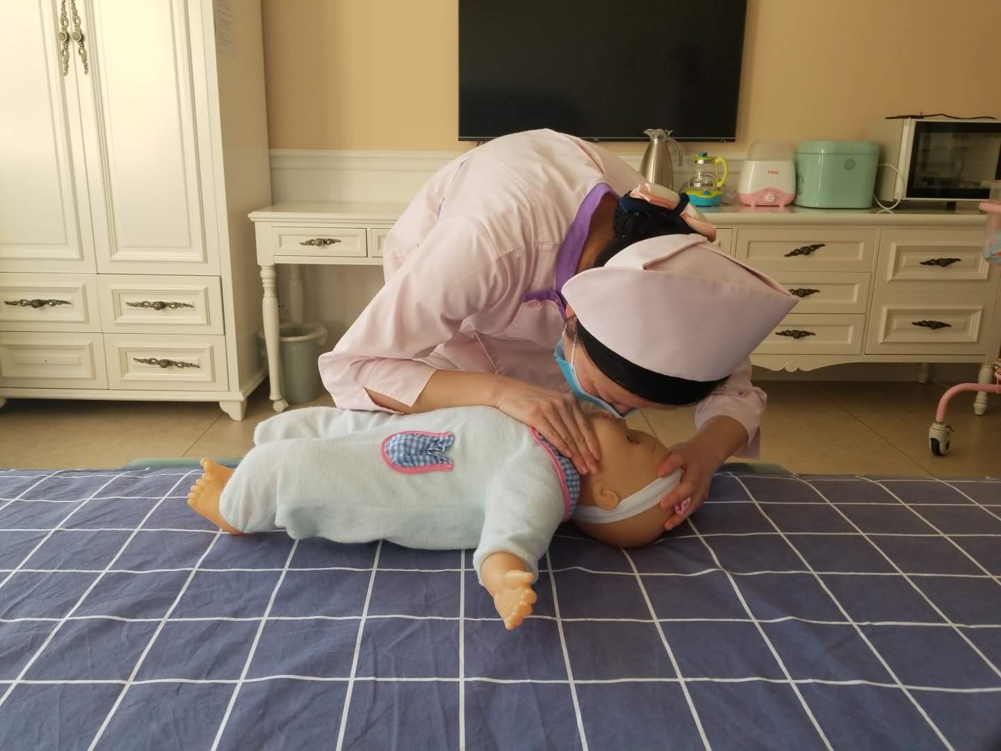 操作方法:立即將患兒取頭低腳高位,俯臥在施救者腿上,讓嬰兒上身前傾45~60度,施救者左手虎口打開(kāi)、托住嬰兒下頜、打開(kāi)氣道,用右手掌跟大魚(yú)際部位用力扣拍嬰兒背部4—5次,具體位置為背部肩胛骨中間,通過(guò)振動(dòng)使吸入呼吸道的奶汁或痰液排出。